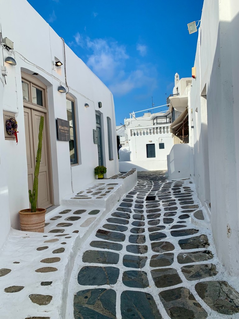 What I didn’t realize was that Mykonos hotels are built high into the hills, and the way up wasn’t as simple as it seemed on a map. Instead of a direct path, I found myself zigzagging up endless switchbacks, all while carrying my 20lb backpack in the warm midday sun. With no taxis, buses or pedestrians in sight, I just forged on, resigned to my choices.