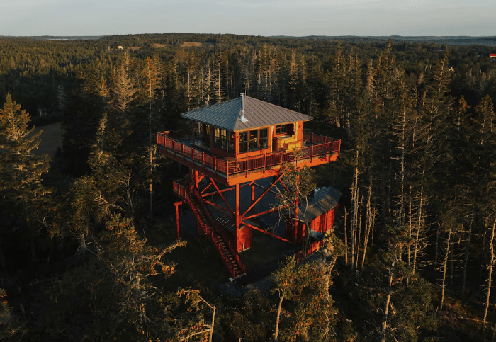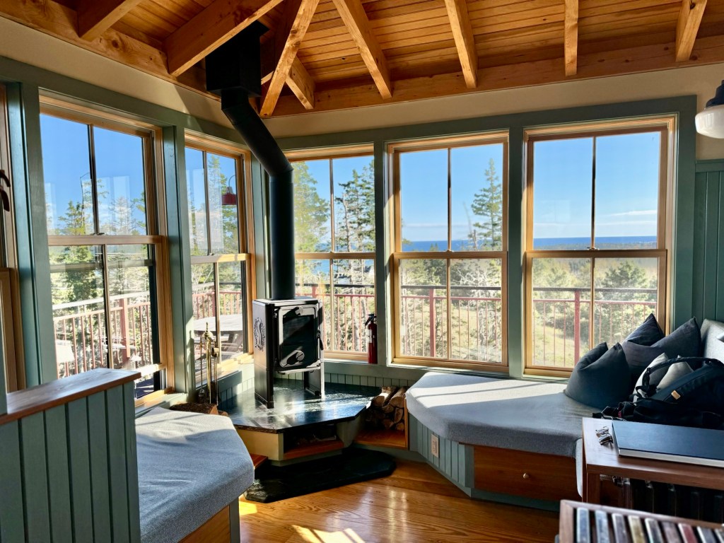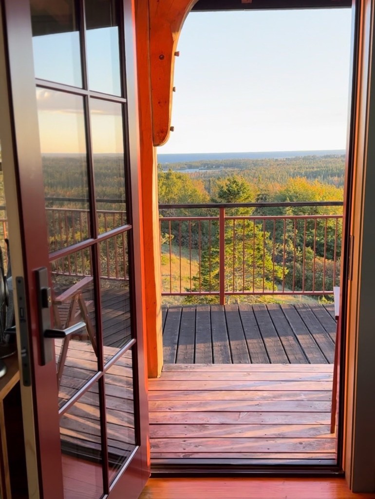 After leaving PEI, we made our way to Nova Scotia, where we spent one night in Broad Cove, a quiet coastal town known for its scenic cliffs, forested trails, and ocean views, which was a perfect spot for a little getaway. Our “Sleep in the Clouds” Airbnb was perched 30 feet above the ground among the trees, with the ocean in the background, and it felt completely magical.