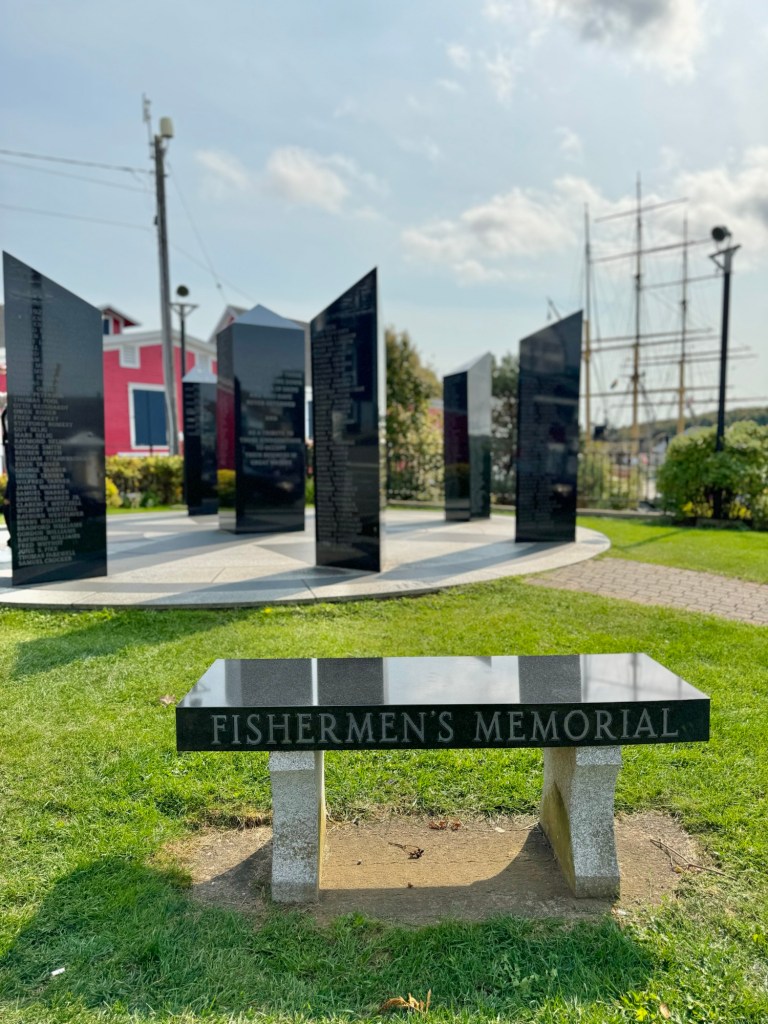 As we walked along the waterfront, we also came across the Fishermen’s Memorial, a striking tribute to the many mariners who lost their lives at sea. The monument, shaped like a compass rose with black granite columns, is inscribed with the names of fishermen from Lunenburg County who never returned, honoring both their courage and the risks of making a living on the water.