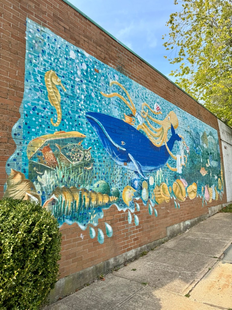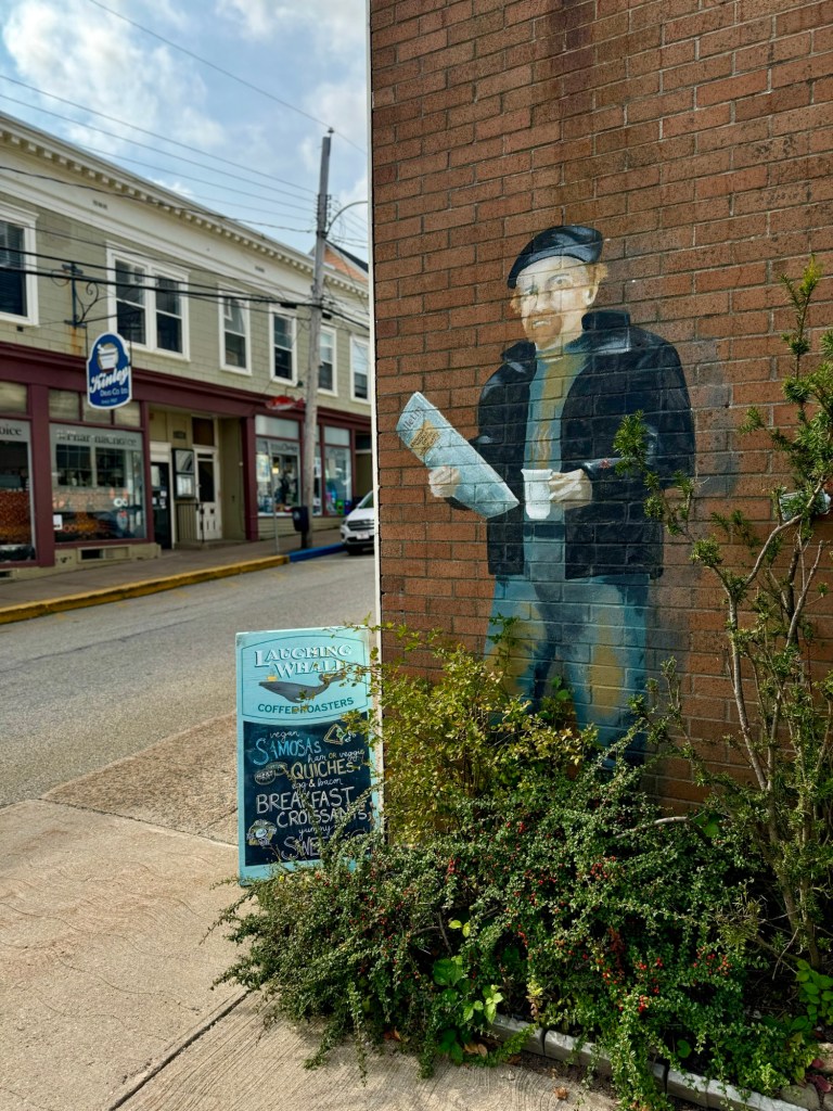 As we continued exploring Lunenburg, the town itself was full of murals and decorated walls along the streets, along with beautiful interesting architecture and tons of local shops that gave the town its unique charm. Lunenburg is built on a gentle hill, so the top of town sits above the harbour, with plenty of restaurants, bars, and patios where you can take a break and enjoy charming views of the waterfront and its colourful fishing boats.