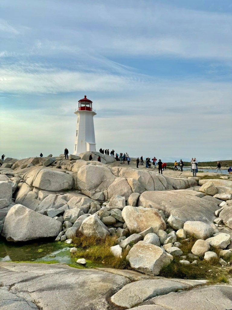 Next, we headed to Peggy’s Cove, one of Nova Scotia’s most recognizable coastal spots. The village sits on some of the oldest exposed rock in the world with its dramatic coastline. The classic red-and-white lighthouse was built in 1914 to guide ships safely through the often-treacherous Atlantic waters and is a popular spots for people to visit. We took a few fun photos on the rocks, soaking in the dramatic scenery, before continuing on to Halifax.